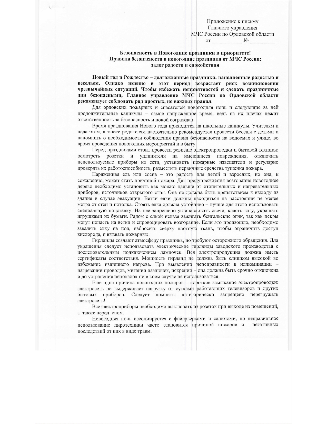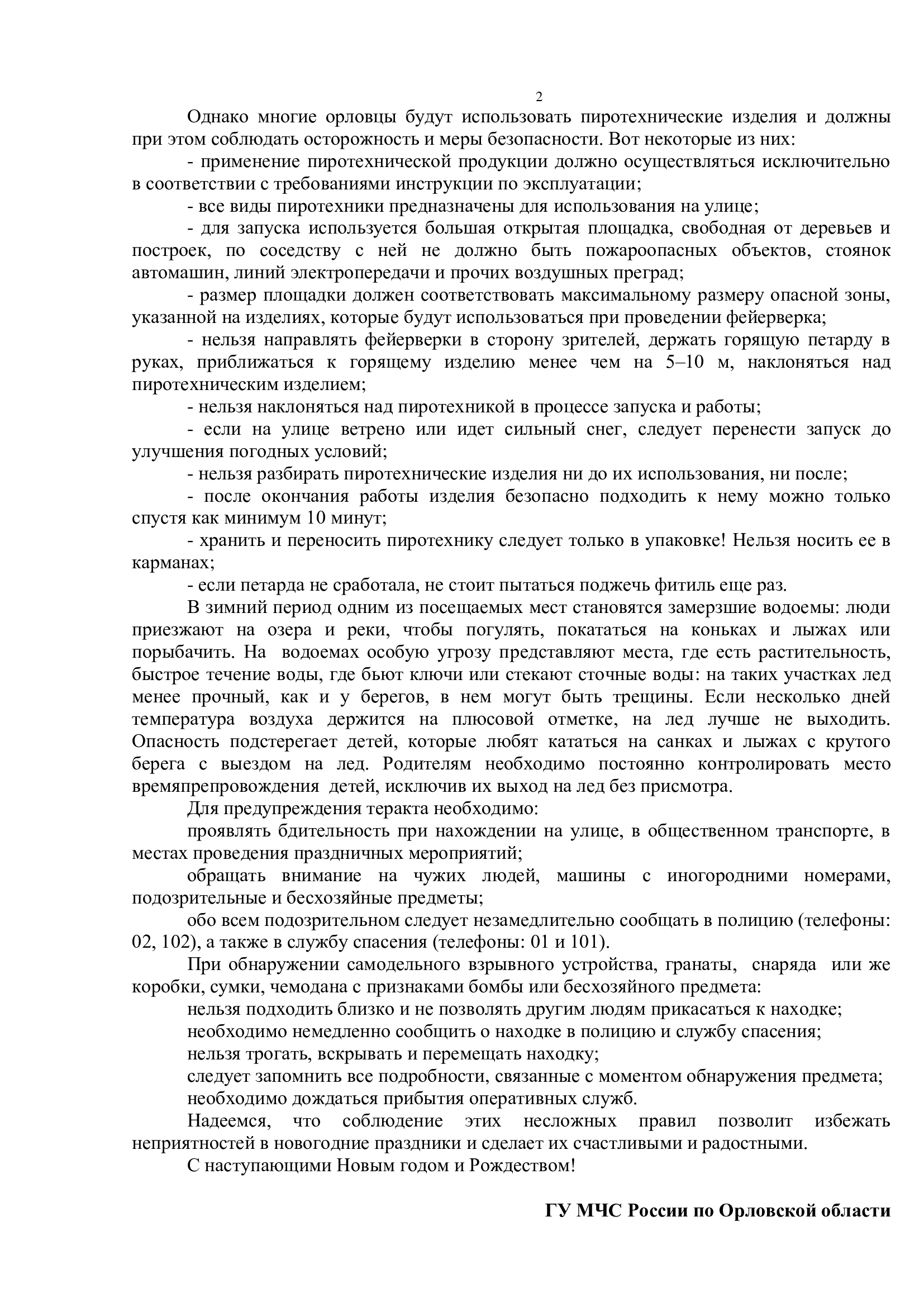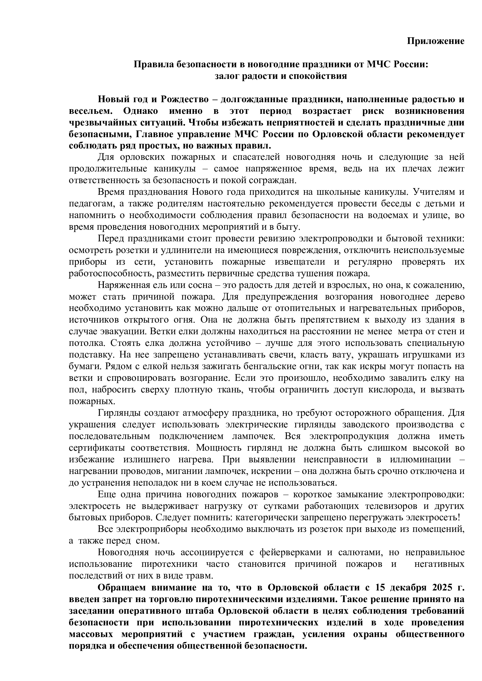 Главное управление МЧС России по Орловской области напоминает о правилах пожарной безопасности при праздновании Нового 2026 года