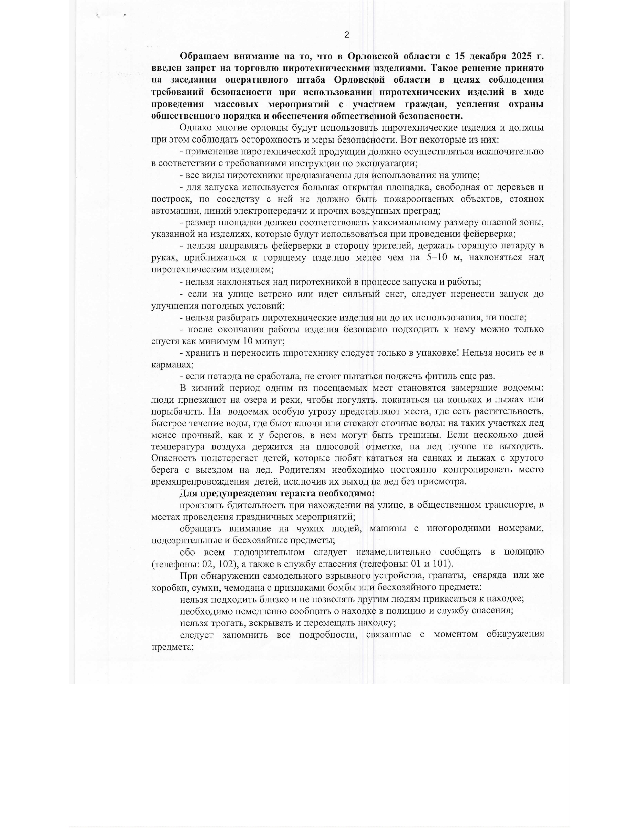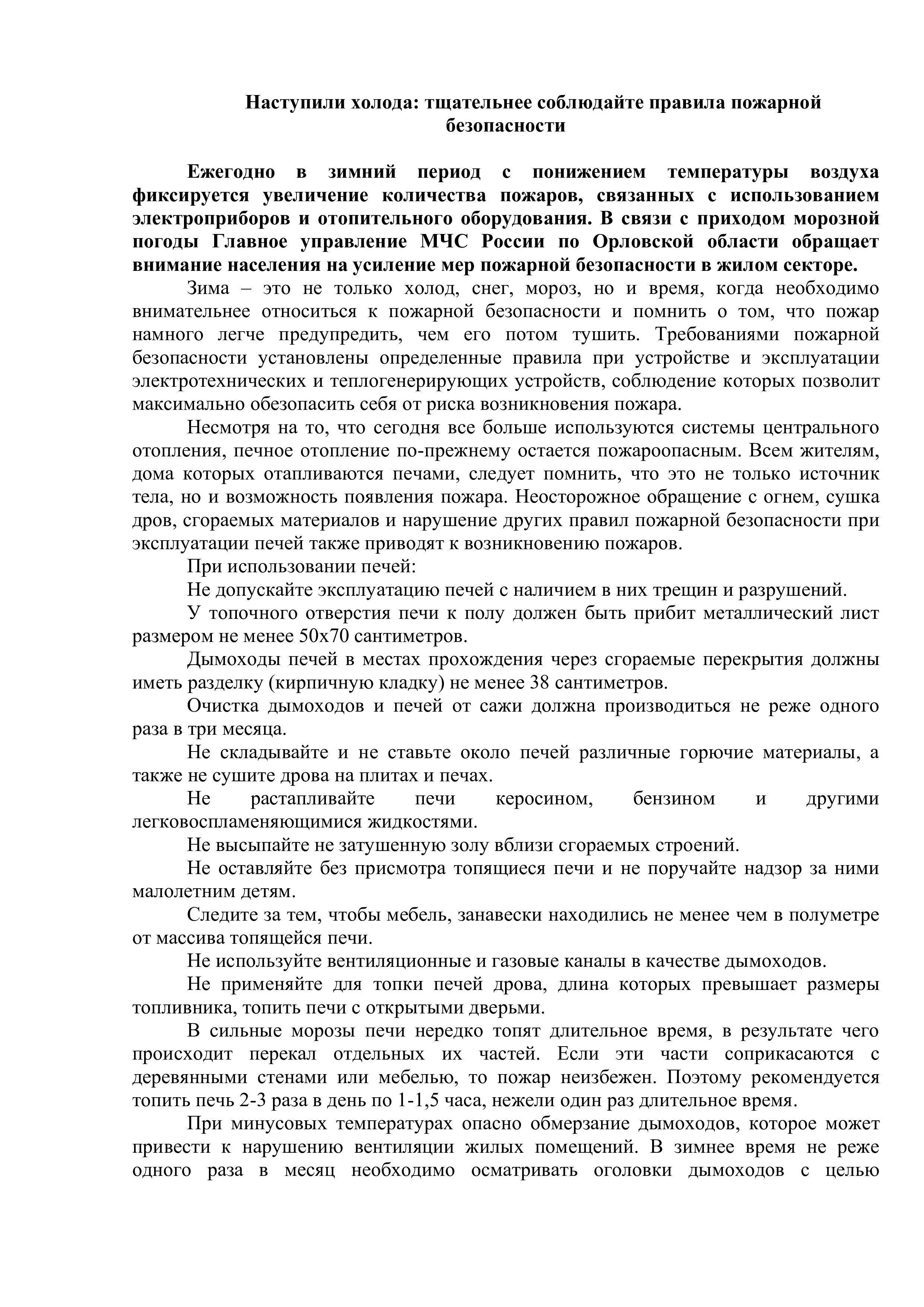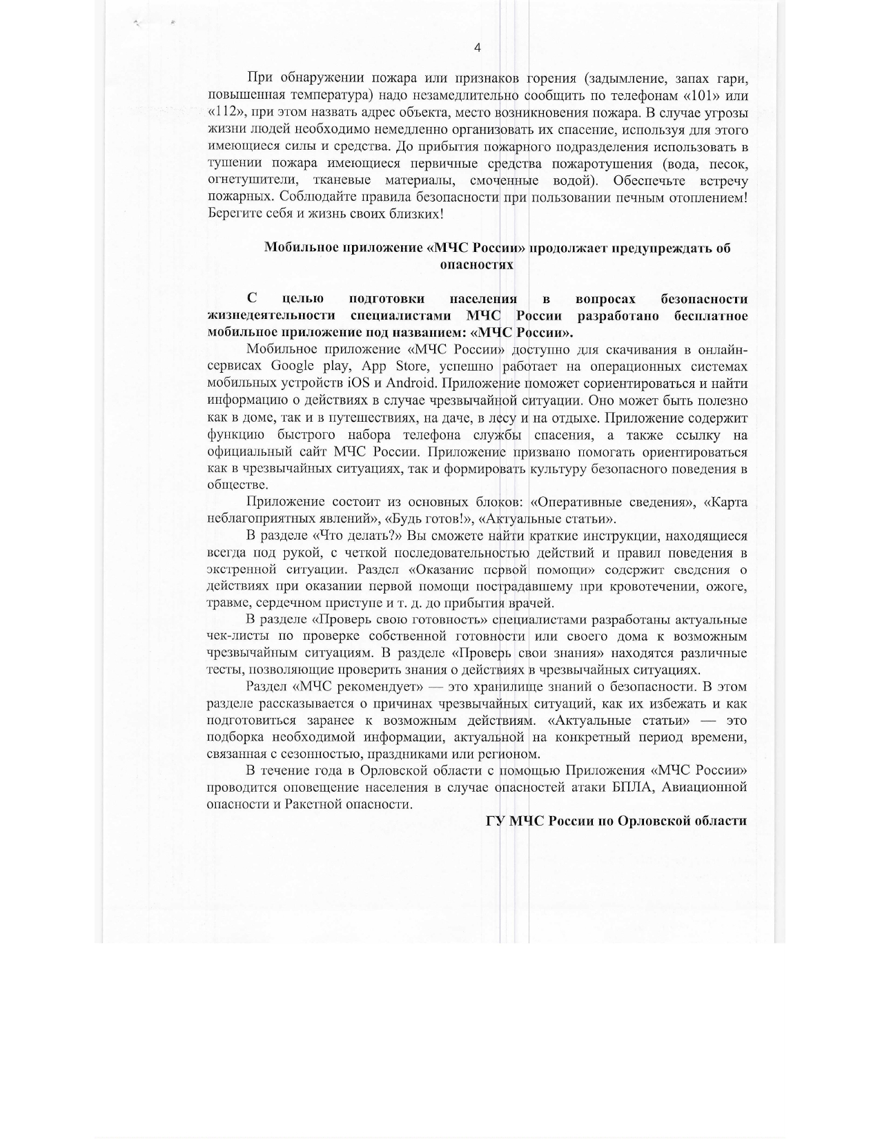МЧС информирует о безопасности населения