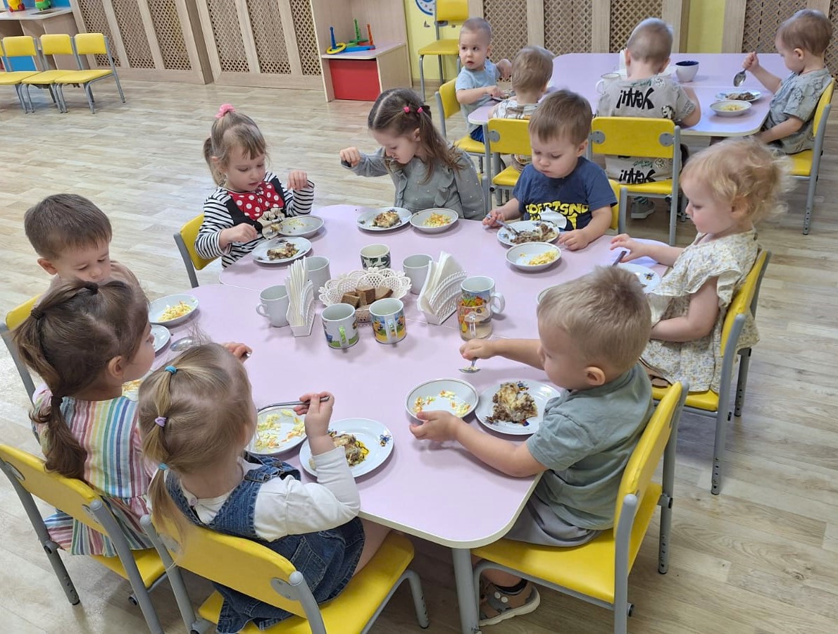 Питание в детском саду осуществляется в соответствии с утвержденным 10-дневным меню приготавливаемых блюд. Ежедневно родители имеют возможность знакомиться с меню на стендах в приемных групп, на официальном сайте детского сада.